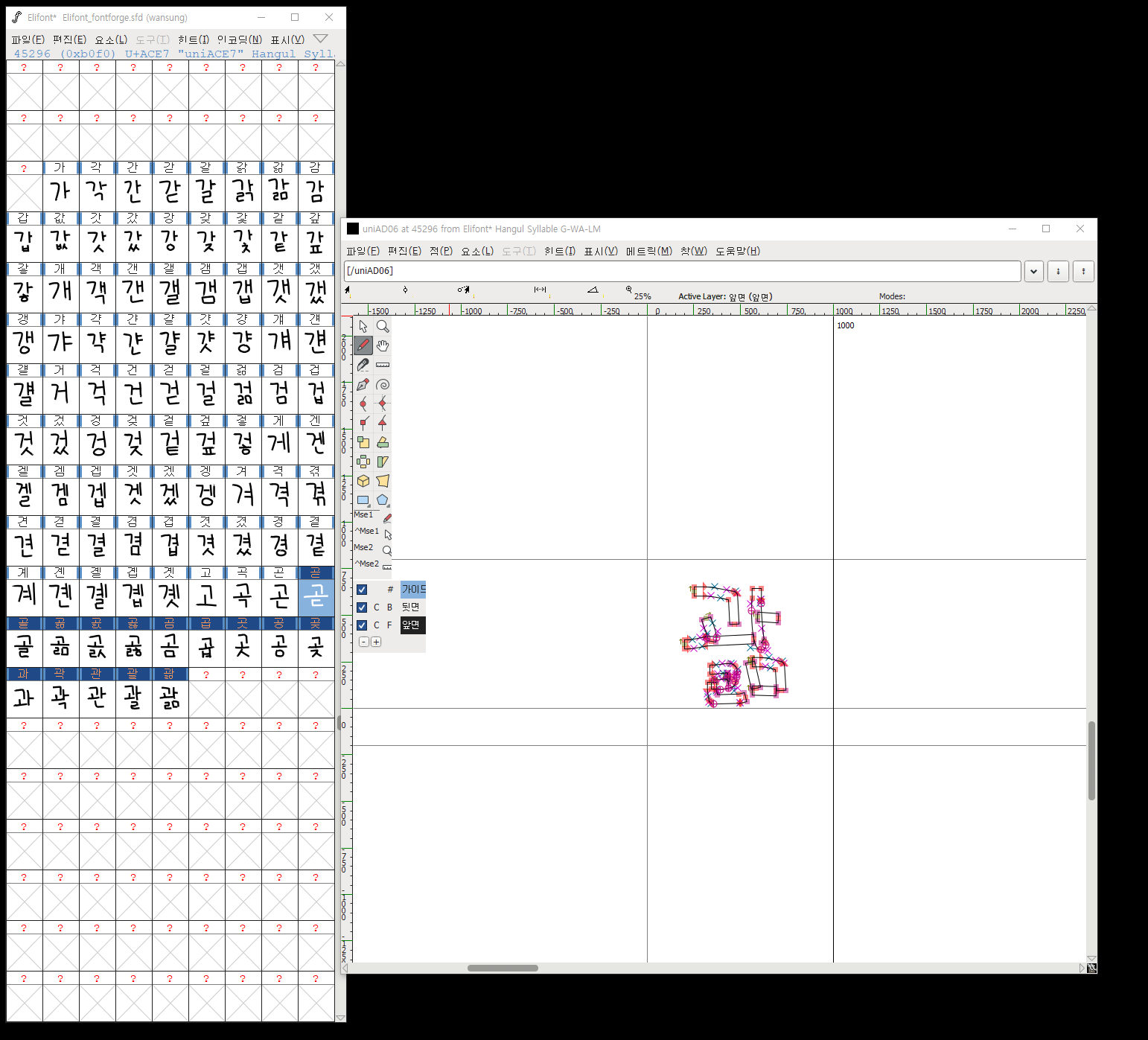 이 글을 보고 Fontforge로 선택하였다. 이외 프로그램들도 몇 개 체험판으로 다운받아 설치하였으나 결국 무료로 사용할 수 있는 fontforge로 하는 것으로 결정하였다.
