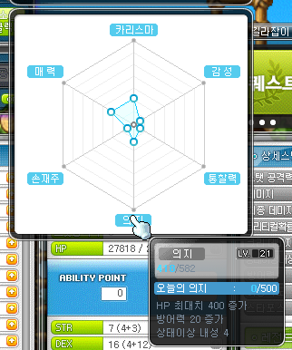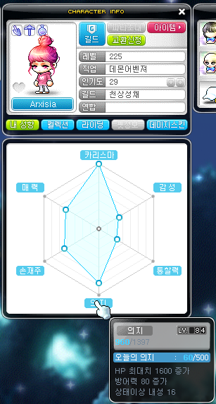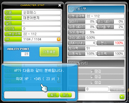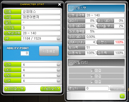 - MHP = 1184 = 400(기본 의지20렙, 성향창에 안보임) + 784(순피?)