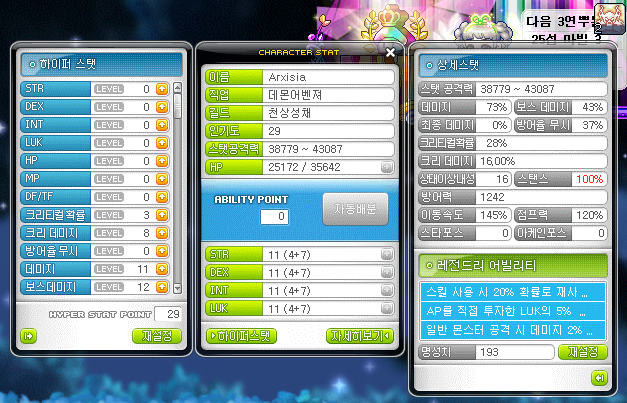 - 크확 28% = 25%(4차기본) + 3%(하이퍼스탯 3렙)