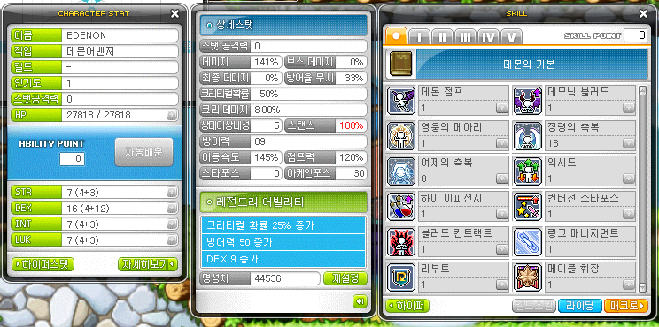 - 크뎀 16% = 8%(4차 기본) + 8%(하이퍼스탯 8렙)