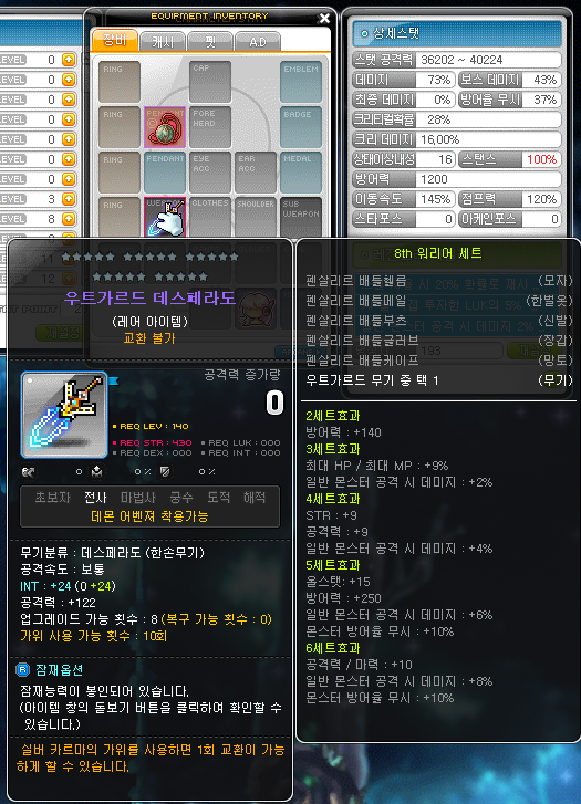 무기 힘40 (표기스탯 45) 무기공 122 표기스공 40447