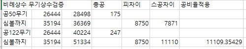 | 무기공 | 표기공증 | 공1당공 | 꼈을때스공 | 숨겨진공 125계산시 (125+무기공)*162.845 |