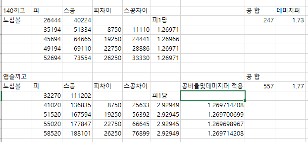 피뻥 영향 안받는피에서 피 1당 스공 1.26971 상승.