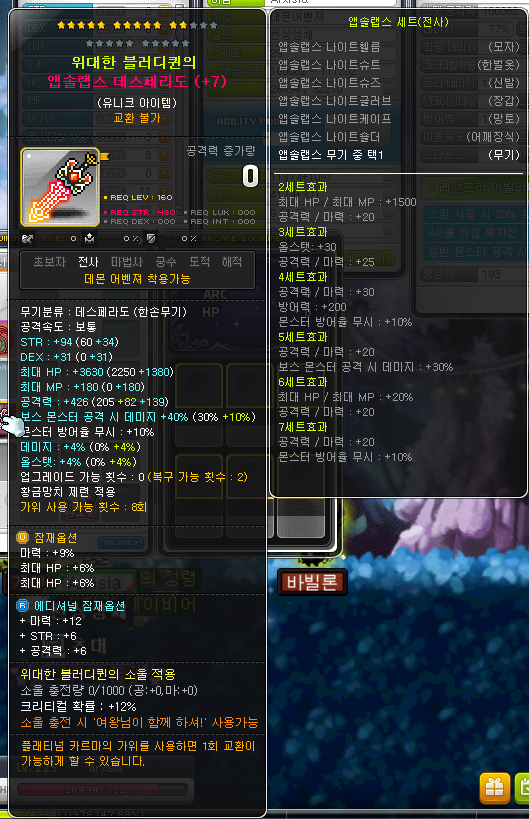 무기공 80 노스탯(스탯창표기힘 9) 표기스공 33385