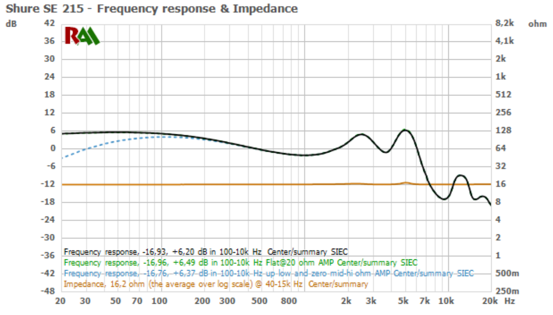 가장 먼저 이어폰의 임피던스를 확인하기 위해 메인보드 사운드카드 관련 프로그램인 Nahmic 을 깔았다. 그러나 어디에도 현재 꽂은 이어폰의 임피던스를 숫자로 볼 수 있는 부분이 없었다. 어쩔 수 없이 인터넷을 뒤져서 슈어 SE 215와 갤8+ 번들이어폰의 주파수응답과 임피던스를 찾아냈다.