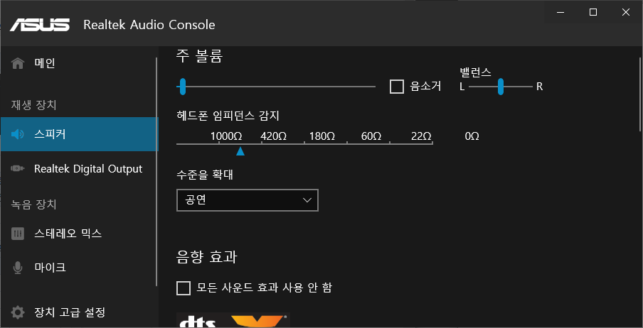 표시되는 임피던스가 앞에서 조사했던 것과 값이 다르긴 한데, 어쨌거나 자동감지해준 값으로 사용했을 때 내 귀로 듣기엔 노이즈가 전혀 없다. 자동감지 만세.