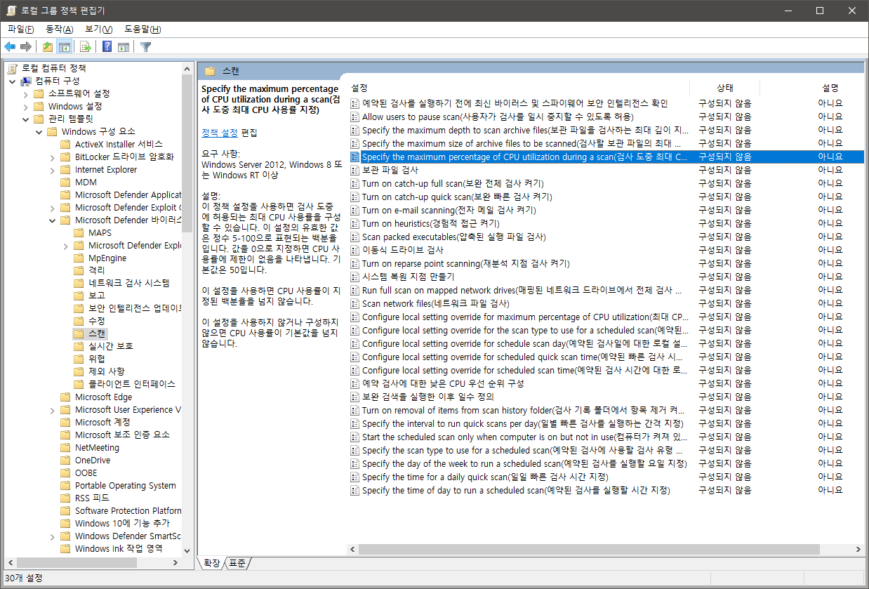 컴퓨터 구성 > 관리 템플릿 > Microsoft Defender 바이러스 백신 > 스캔