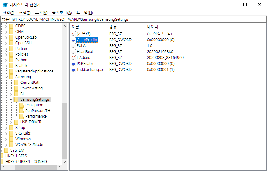 대충 내가 찾는 그 AMOLED의 컬러 프로파일이 맞는 것 같았다. regedit을 켜서 들어갔다.
