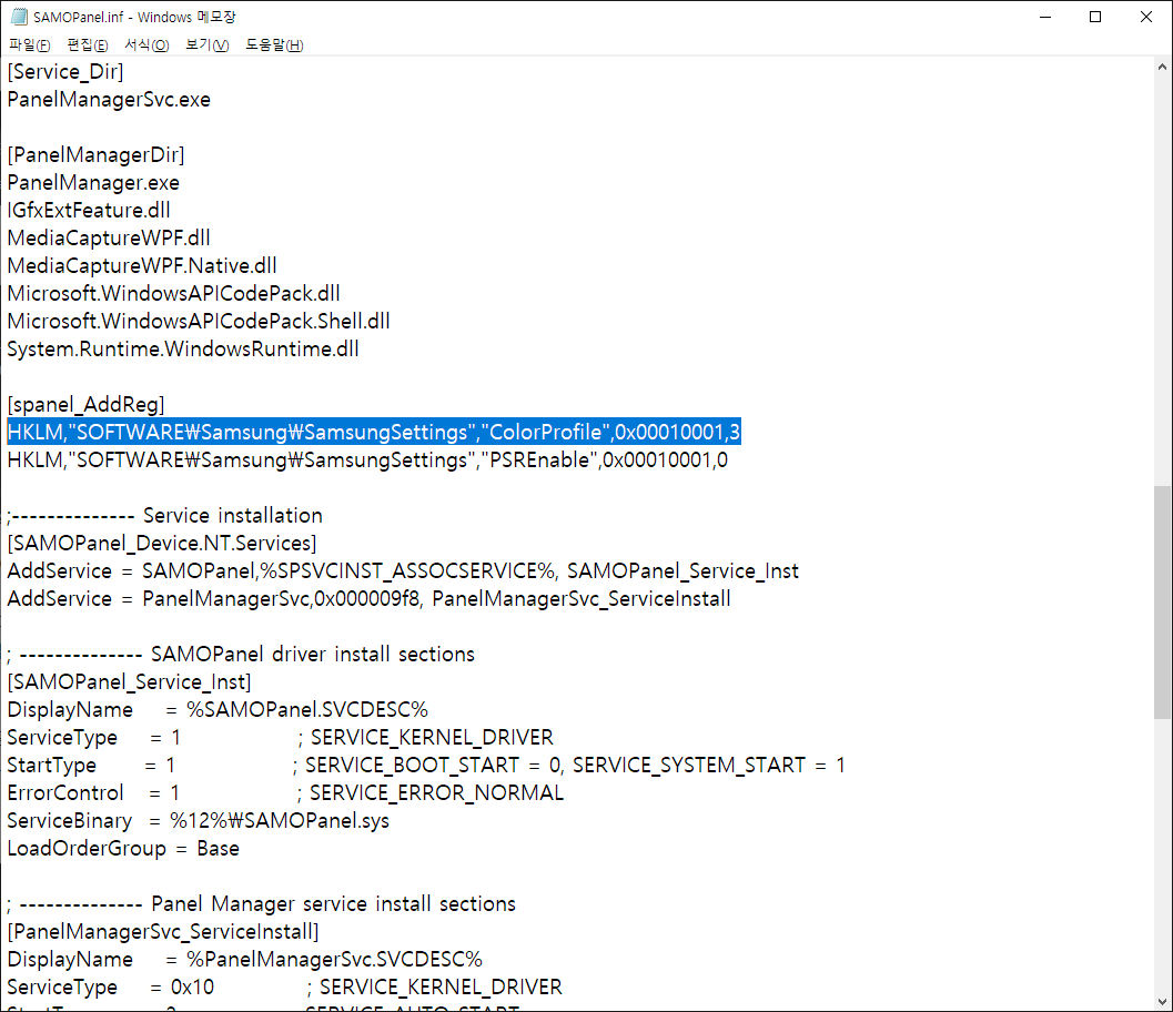 국내자료는 아무리 찾아도 안나와서 해외의 힘을 빌려보았다. 해외용 삼성 드라이버 다운로드 사이트에는 각종 드라이버 바이너리 및 세팅 inf들을 다 뿌리고 있었다. (국내껀 통합 드라이버 설치밖에 없던데 역차별 무엇...)
