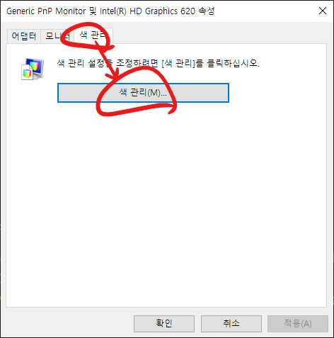 색 관리 탭 - 색 관리 클릭