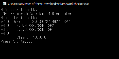 옛날꺼부터 다 깔려있었다. 대충 3.5를 깔면 그 이전껀 다 호환되고, 내가 쓰고있는 빌드에서는 닷넷 4.8 및 4.X가 빌트인으로 깔려있다. 하여간 닷넷문제는 아니었다.