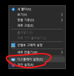 바탕화면 빈공간 우클릭- 디스플레이 설정