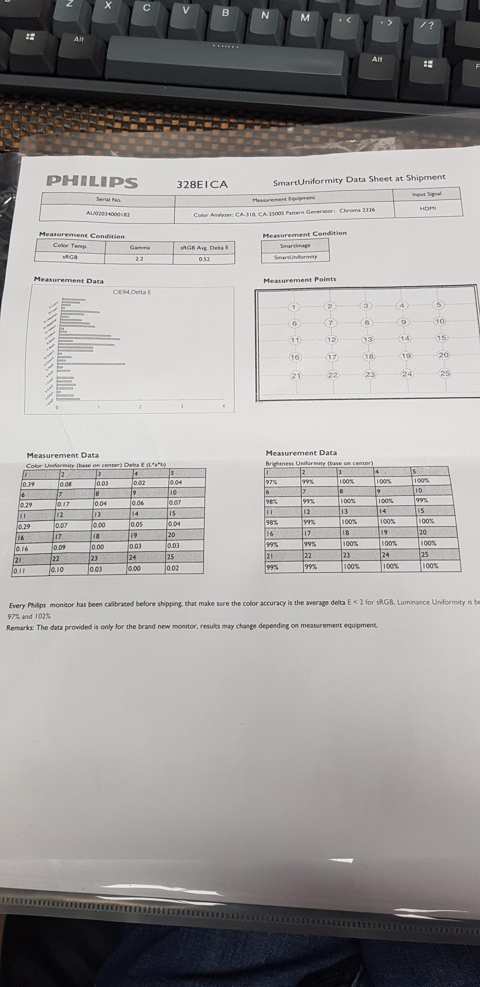 역시 대기업은 이런것도 주는구나 싶었다. L*a*b 색공간에서 delta E를 재 놨는데 찾아보니 요즘 모니터들은 균일도 평가를 이걸로 하는 것 같았다. 얼마전만 해도 CIE 1976에서 JNCD로 계산했던 기억인데 이제 고색역 시대라서 눈에 보이는 모든 색이 대응 가능한 L*a*b를 쓰나보다. 여튼 뭐 광량 5% 미만 차이면 육안으로 구분이 힘들거기 때문에 대충 만족.