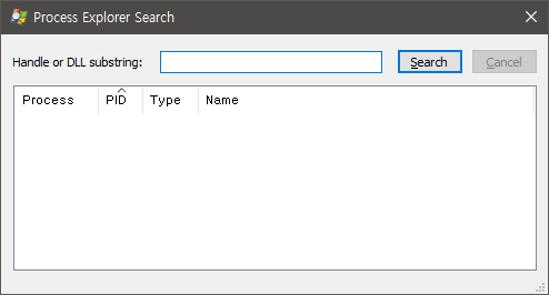 원래는 훨씬 많은 기능들을 포함하고 있지만, 이번 목표는 안지워지는 파일이나 폴더를 어떤 프로그램이 잡고있는지 찾을 것이기 때문에 생략하도록 한다. 그냥 이 상태에서 Ctrl + F 단축키를 눌러본다. 그러면 다음과 같이 뜬다.