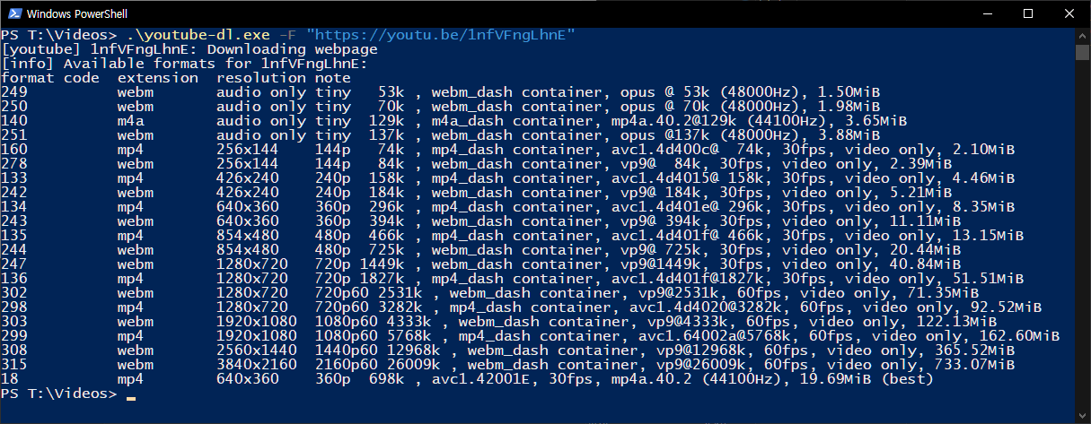 .\youtube-dl.exe "https://youtu.be/1nfVFngLhnE" -f 278+249