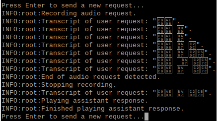 # and playing back assistant response using the speaker.