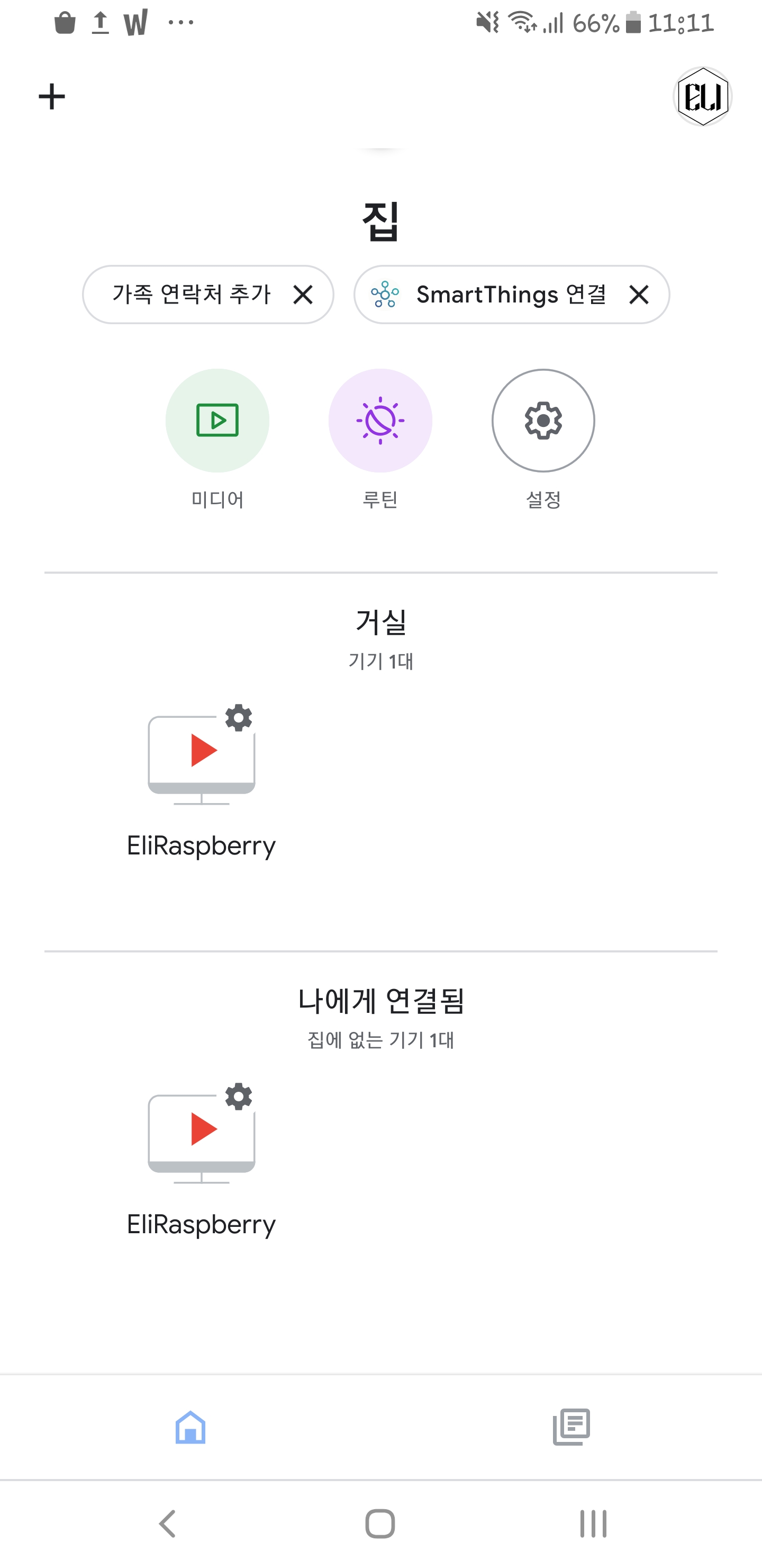 참고로 스마트폰에 깔려있는 구글 홈을 켜보면 아래와 같이 구글홈 연동이 가능한 기기로 등록이 되어있는 것을 알 수 있다.