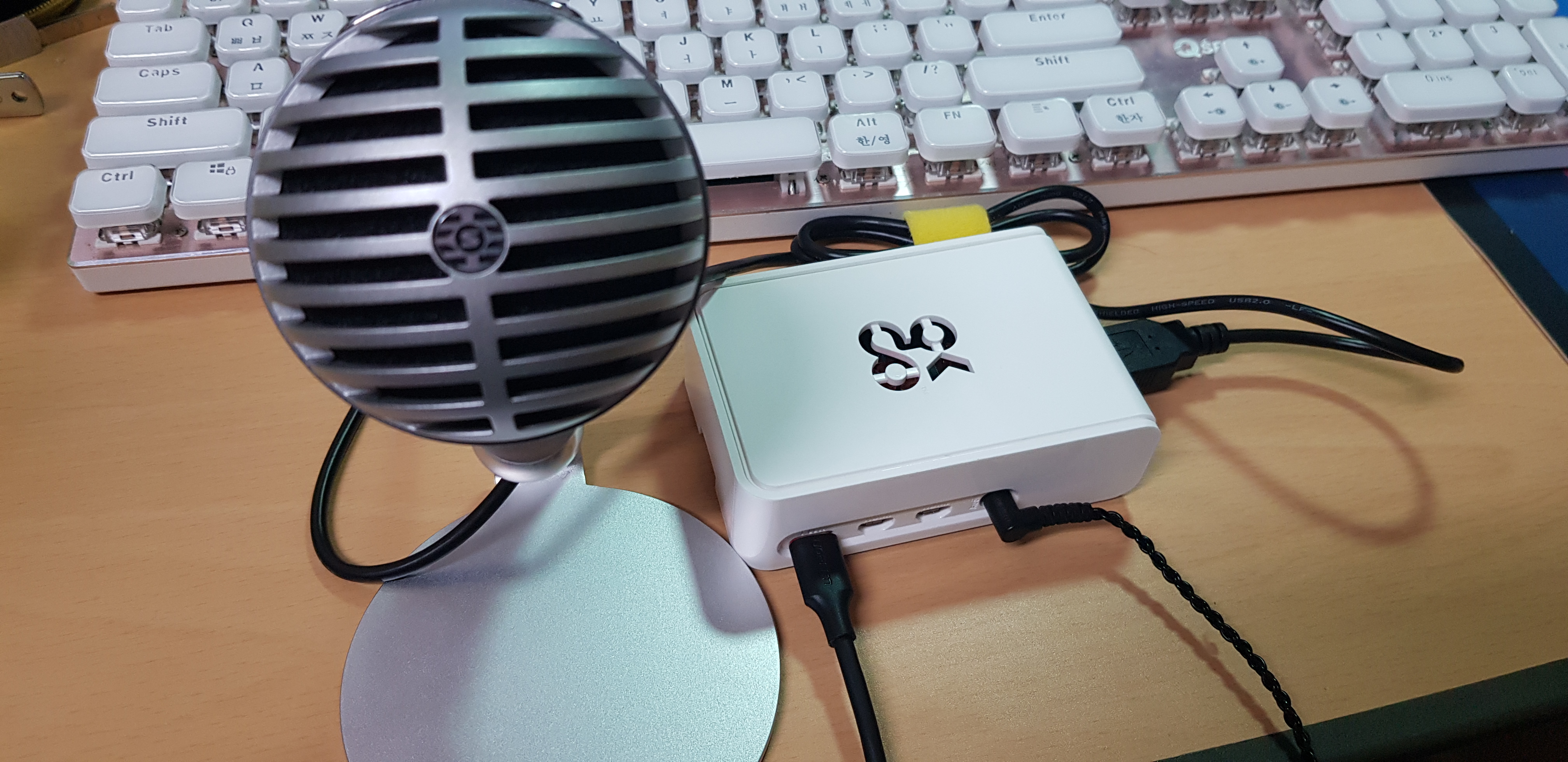 마이크: USB 마이크 (shure MV5) 를 USB 3.0 슬롯에 꽂음