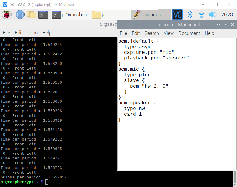 Front left를 반복적으로 말하는 여자 목소리가 나온다. Ctrl + C를 누르면 그만한다.