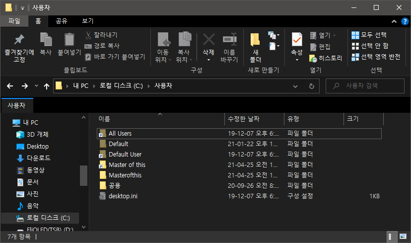 위 과정이 끝나고도 User 폴더에 Administrator라는 폴더가 남아 있는데, 이제 지워줘도 된다. 여기까지 하면 다음과 같은 결과물을 얻는다.