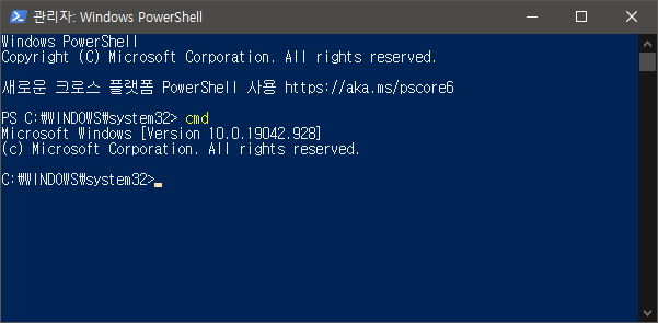cmd를 입력한다. 이걸 해줘야 이후 명령어들이 제대로 동작한다.