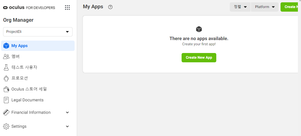 오큘러스 계정에서 organization 생성