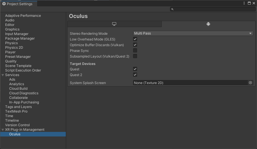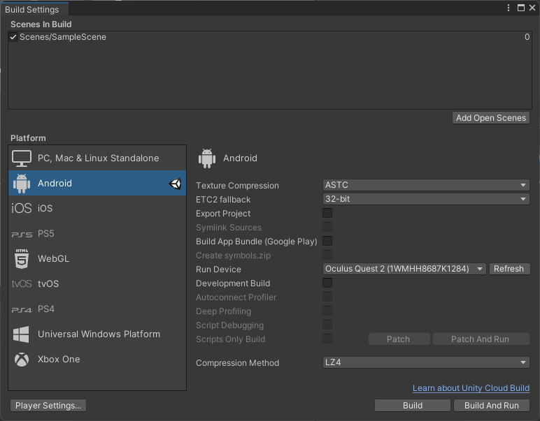 https://developer.oculus.com/documentation/unity/unity-conf-settings/#build-settings