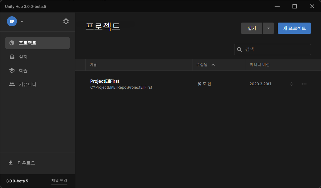 유니티 허브 버전: 3.0.0-beta.5
