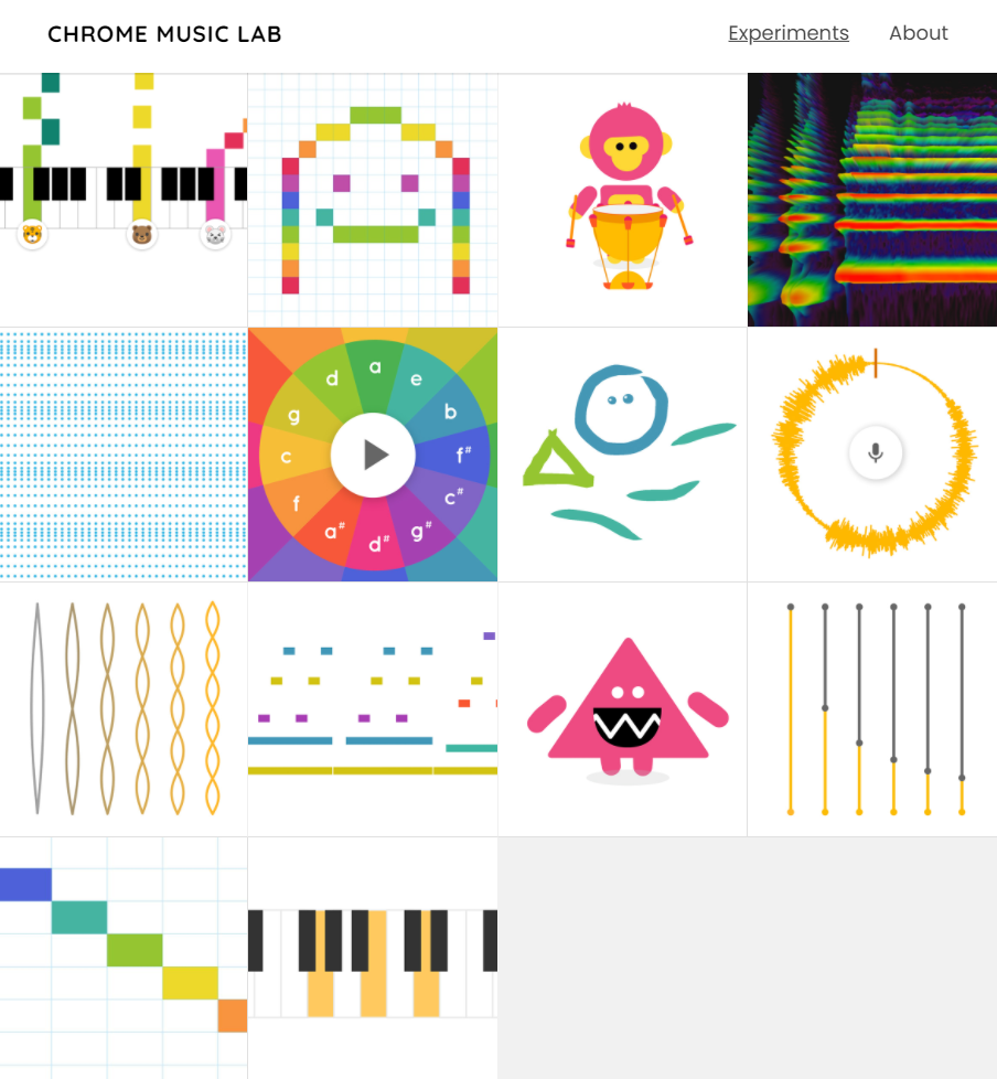 관련해서 약간 검색을 하다보니 한 영상에서 Song maker 라는 것을 발견하였다. 그리고 이것이 이번에 다룰 chrome music lab의 일부라는 사실을 깨달았다. 약간 쓰다 보니 꽤 괜찮은 앱들을 많이 담고 있어서 기록으로 남겨 본다.
