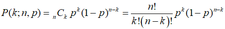 p^k (1-p)^(n-k) = 그렇게 k번 당첨되는 가능성 한 개가 나올 확률이 얼마인지