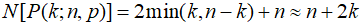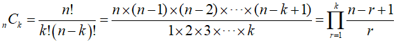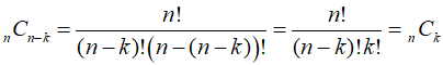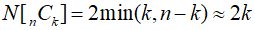 이를 이용하면 분모중에 k가 클 경우 k!이랑 약분하고 k가 작을 경우 (n-k)!이랑 약분하면 계산 횟수가 최소한으로 줄어든다. 즉 k랑 n-k 중에 더 작은 수를 이용하면 좀 더 계산이 효율적이게 된다. 이를 수식으로 표현해보면 다음과 같다. 보통 k가 n에 비해 많이 작을 것이기 때문에 2k번으로 근사할 수 있다.