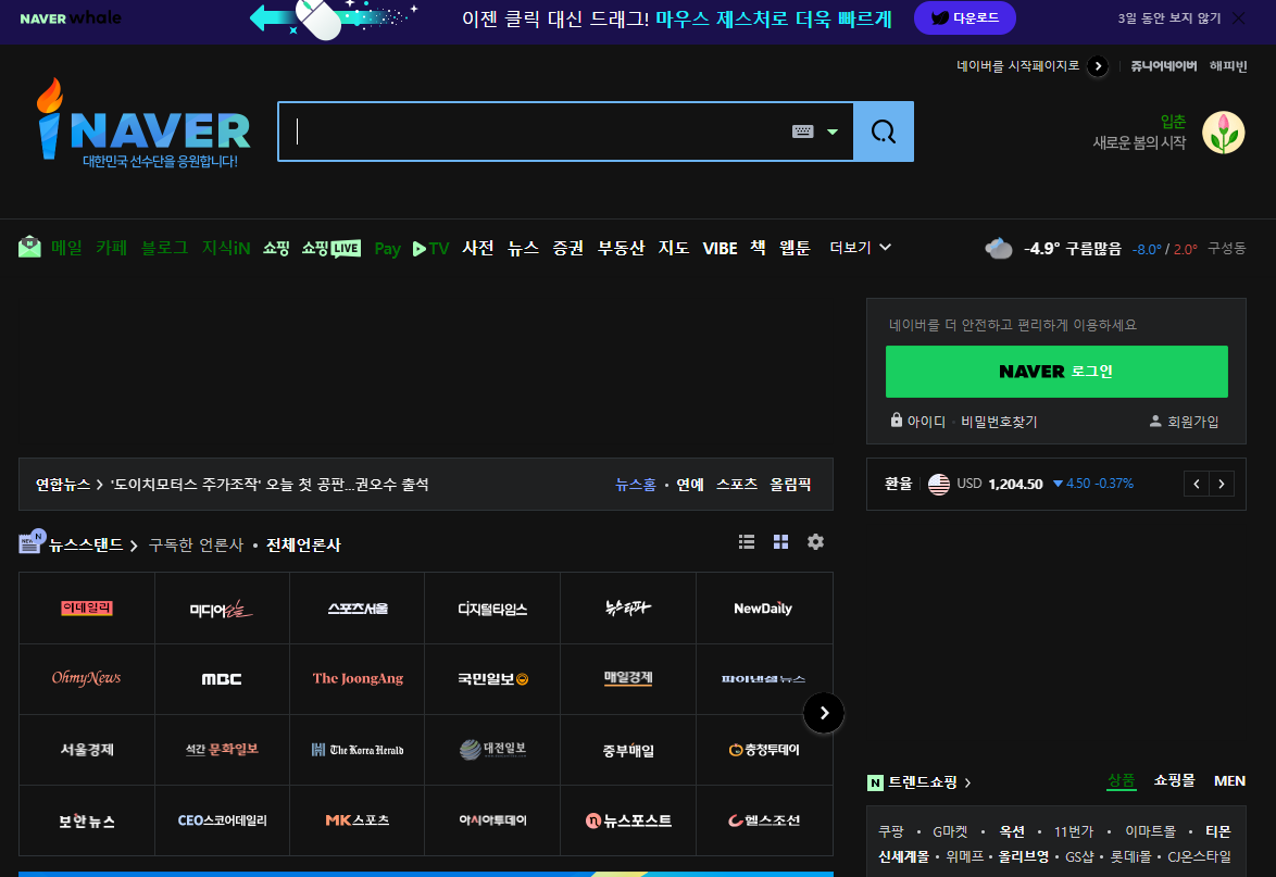 이렇게만 하면 아래와 같이 다양한 웹 페이지에서 검은색 테마가 되는 것을 볼 수 있다. 가끔 배경색을 특정 색으로 지정해놔서 안되는 곳도 있긴 한데 대부분 잘 된다.