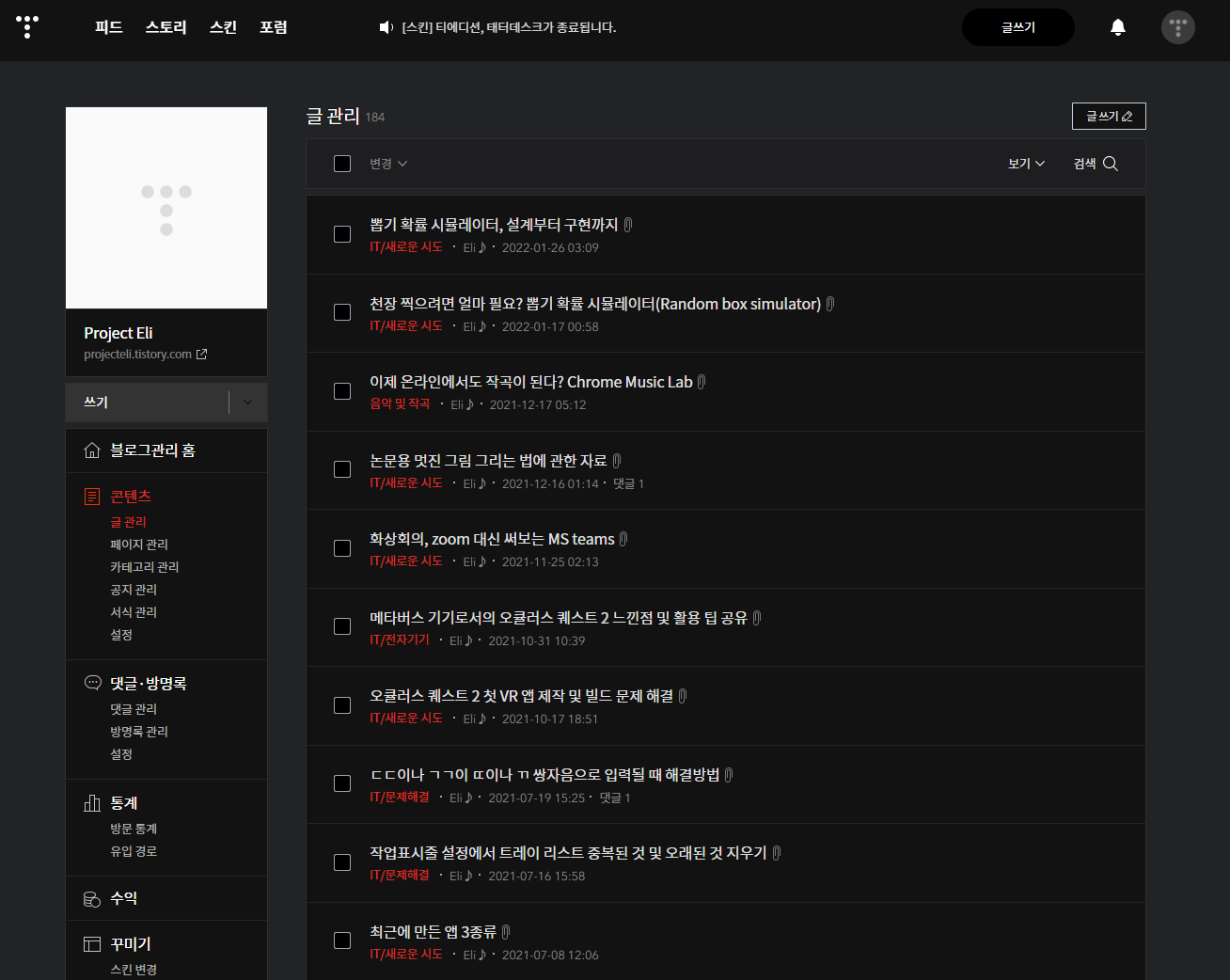 1. 테마 변경에 대응하지 못하는 콘텐츠가 있는 경우 검은색에 묻혀서 내용이 보이지 않을 수 있음