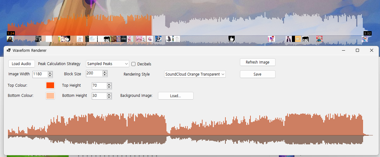 Pydub 및 PIL을 이용한 오디오 파형 생성 및 png로 저장