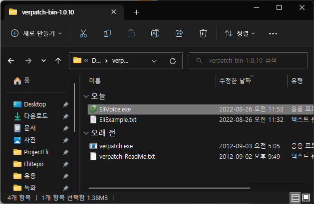 다운을 받았으면 해당 폴더에 verpatch.exe가 있을 것이다. 변경할 파일의 경로명 일일이 찾기 귀찮아서 대충 해당 폴더에 바이너리 복사해서 때려넣었다.