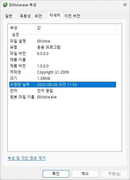 특정 게임에서 내가 사용중인 프로그램의 프로세스명으로 태클거는걸로 추정이 돼서 파일명 및 경로명, 그리고 프로세스명을 변경하였고, 완벽을 기하기 위해 file description도 변경하려고 했으나 윈도우 기본기능으로 있는 속성 및 개인 정보 제거 라는 것으로는 변경이 불가능함.