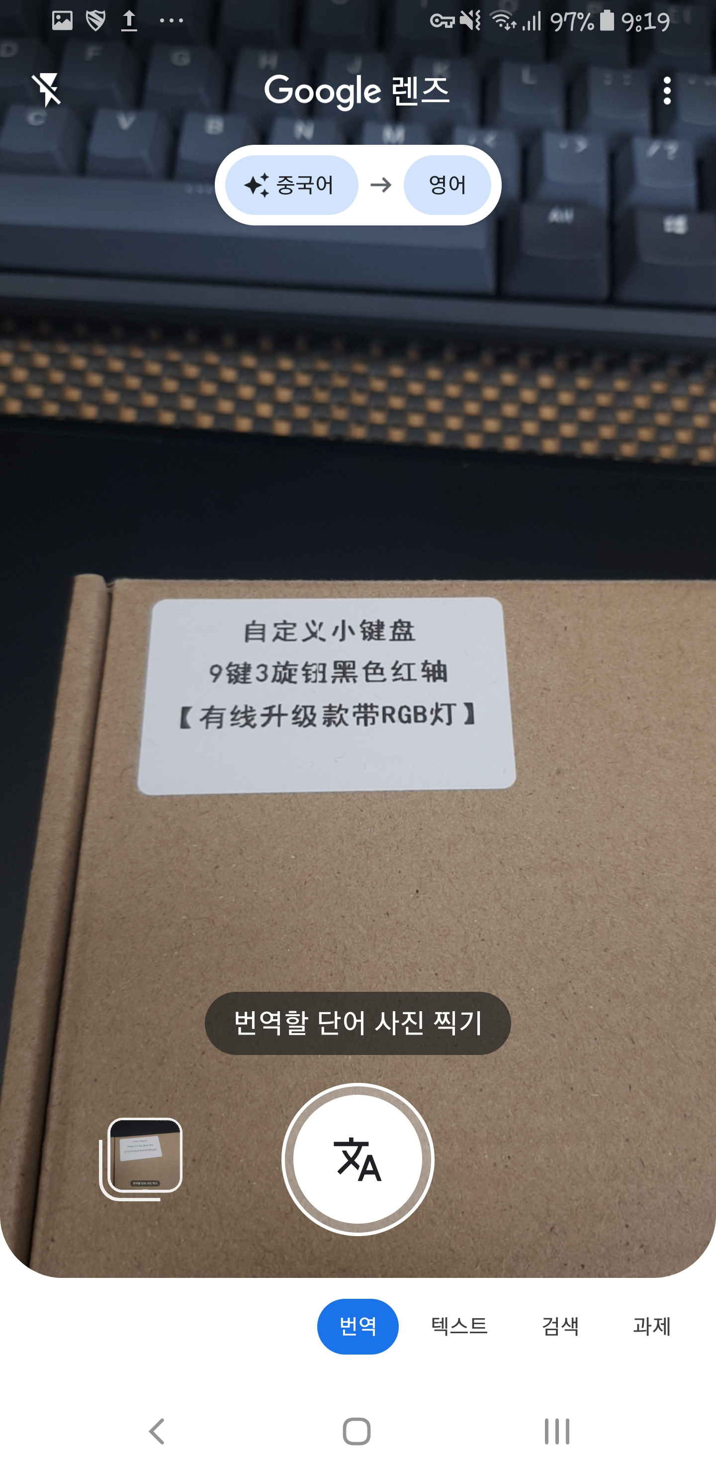 요즘에 메이드 인 차이나가 아닌 게 없지만 그래도 내가 구매한 쿠팡 제품설명 페이지를 보면 설계는 국내에서 하고 중국에 외주줘서 만들었을 거라고 생각했었는데 막상 배송된 걸 보니 아래와 같이 중국어가 적혀있는 것으로 보아 중국 회사가 만든 것을 국내 회사(제이스토리)가 떼어다가 파는 것으로 이해했다. 그래도 뭐 제품 페이지에 방송통신기자재적합등록이라고 번호도 적혀 있어서 인증도 안받고 파는 보따리상은 아니지 않나 라는 생각이다. 상자에 써있는 중국어는 구글 렌즈로 번역해 보니 그냥 커스텀 키매핑 가능하고 노브 달렸고 RGB LED 있는 적축 키보드 정도의 내용이었다.