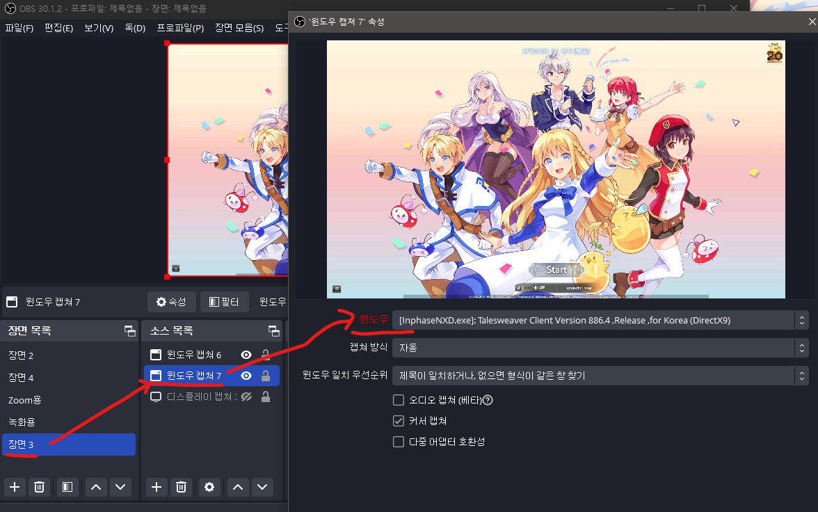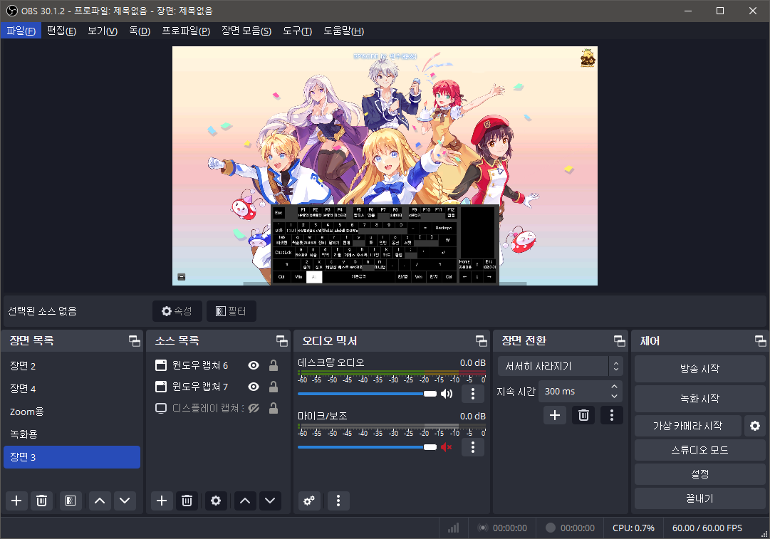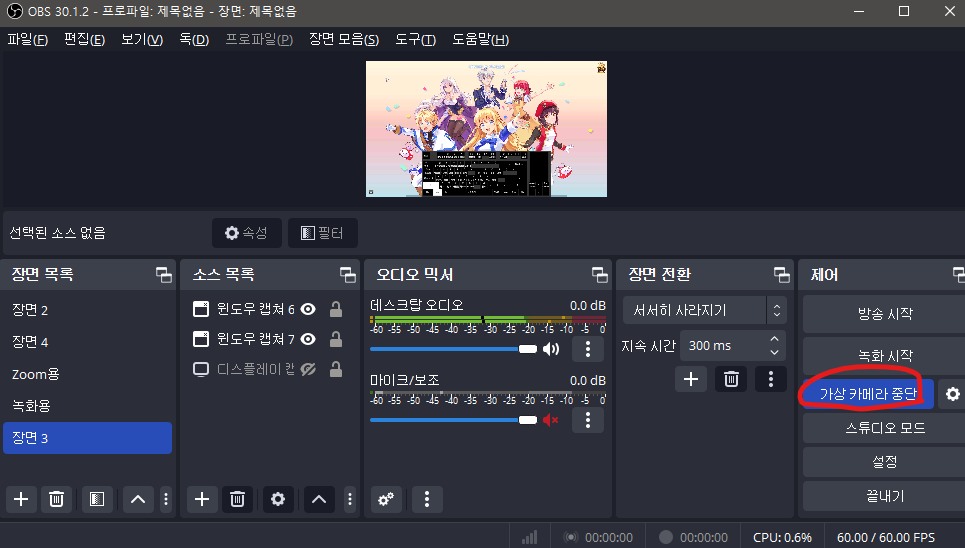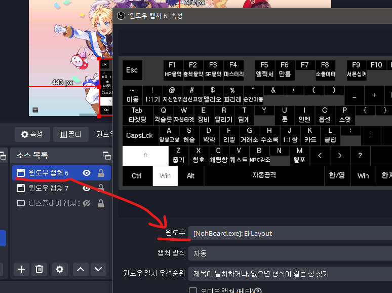 마지막으로 다른 창들과 마찬가지로 OBS에 윈도우 캡쳐로 넣어 준다. 미리보기 창에서 잘 작동하는지 확인 가능하다.