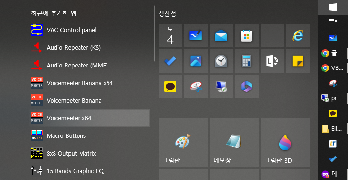 이렇게 해도 아무 소리도 들리지 않을 것이다. 보이스미터에서 설정해주기 위해 아까 깔아뒀던 보이스미터 프로그램을 켠다. x64라고 된 것을 켜면 된다. 바나나로 안 켜도 된다.