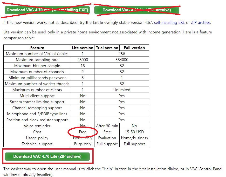 기본적으로 컴퓨터에는 소리가 나오는 출력 채널이 1개밖에 없는데, 이 경우 잘못 설정하면 디코에서 사람들이 말하는 소리가 다시 디코 방송으로 송출돼서 무한 메아리치는 하울링(howling)이 일어나게 된다. 이것을 방지하기 위해서 가상으로 채널을 1개 늘려주는 프로그램이다. 다음의 사이트에서 받을 수 있으며, 주의사항은 스크롤 내려서 VAC Lite로 받아야 무료이다. 만약 컴잘알이라면 꼭 이 프로그램 안 써도 되고 가상 출력채널 늘려주는 아무 프로그램이나 써도 된다. 설치 후 재부팅이 필요할 수 있다.