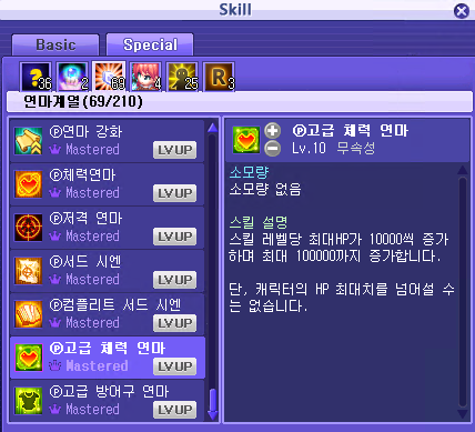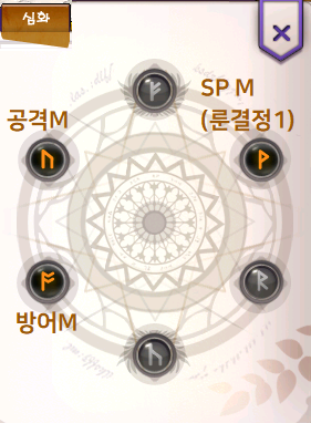 심화탭: 우선순위 공격 - 방어 - SP. SP마스터는 룬의 결정 1개 먹어서 맞췄음.