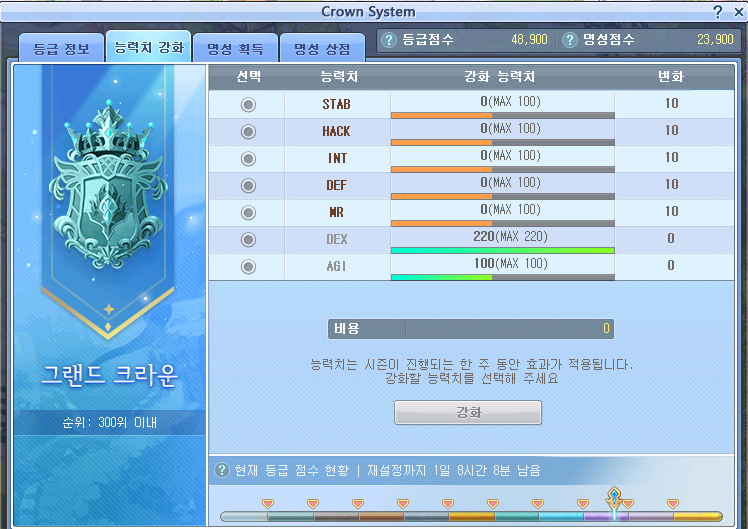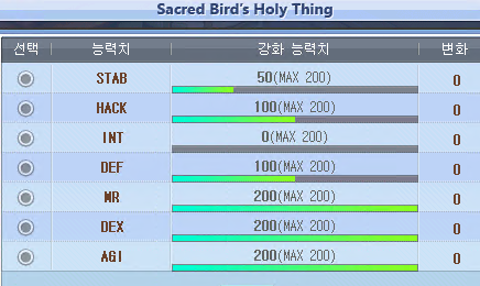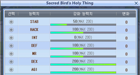 처음에는 인트빼고 다 50씩 올림. 이후 덱어질 핵 각 100 맞췄고, 아퀼상태로 신어헬가려고 덱어질 200찍음. 이후 디펜엠알 100찍음. 아참디 맞춰지는 시점 이후로 디펜엠알 200갈예정.