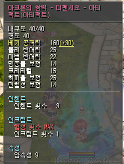 마을 기준 1682베인데 컨텐시 멜리오 쓰므로 대략 1700 맞춰짐. 명보합은 노도핑 기준 1820정도라 이클 보스까진 도핑없이도 올힛 나오고 묘약없이 일루미+개신뢰+퇴마사+사미까지 먹으면 2200정도, 풀도핑시 묘약까지 다 먹으면 베레 명중컷인 2500 아슬아슬하게 됨.