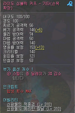 커프 = 베명크 140, 중딜3퍼, 적중검 최상, 가공광물 x.