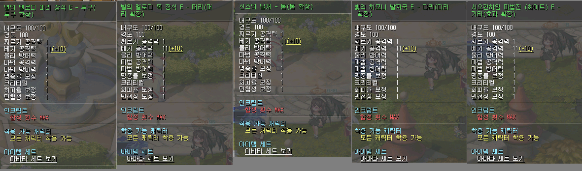 따로 현질 안했고 이벤트 보상으로 주는거 모으다보니 모였고, 1년쯤 하니 전 부위 이벤트 아바타로 5셋 맞출 수 있었음. 이후 룩 괜찮은거 나올때마다 1개씩 바꿨음. 신조날개는 신조 컨텐 처음 나올때 받았던 것, 별의 멜로디랑 빛의 하모니는 게임 20주년 이벤트 보상, 시오칸 마법진은 시오칸 컨텐 처음 나올 때 받은 것. 아바타 강화는 거래소에서 시드로 인증서 상자 또는 개별 아바타 상자 사서 10짜리로 5부위 유지 중.