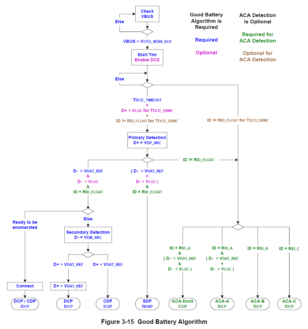 기본적으로 USB PD와 동일하게 battery charge 1.2를 따른다. Qualcom 사에서 만든다. 정식 표준은 아니지만 사실상 따르는 업체가 많아서 표준처럼 됐다.