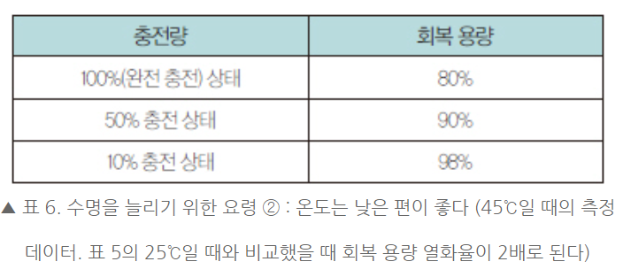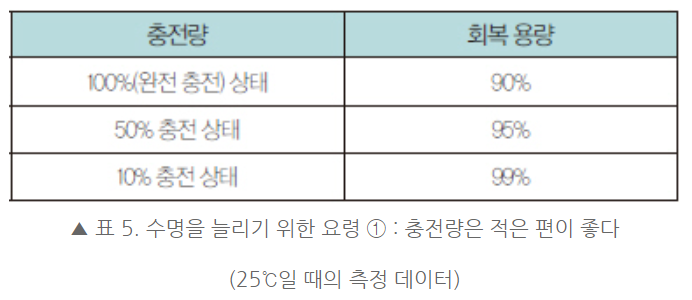 적당히 충전하고 적당히 방전하면 여러 번 충전해도 용량 감소가 거의 없음