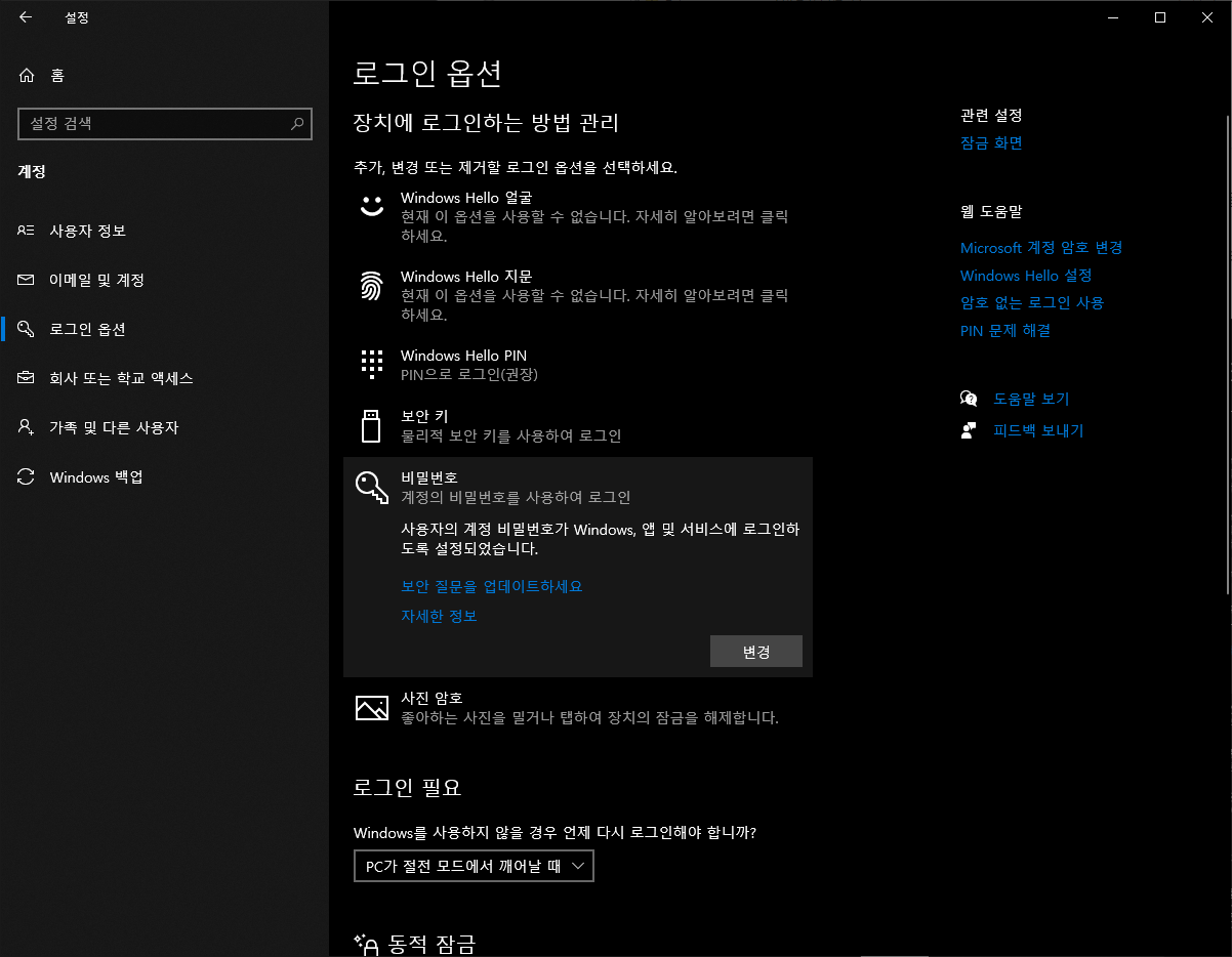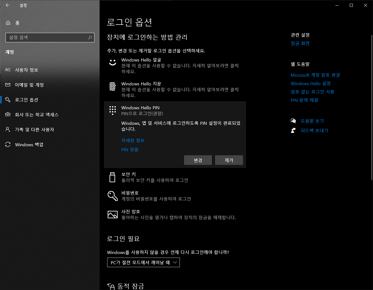 학교 혹은 조직ID로 로그인하시고 Windows Hello 디바이스가 PC에 없다면 무시하시면 되겠습니다.