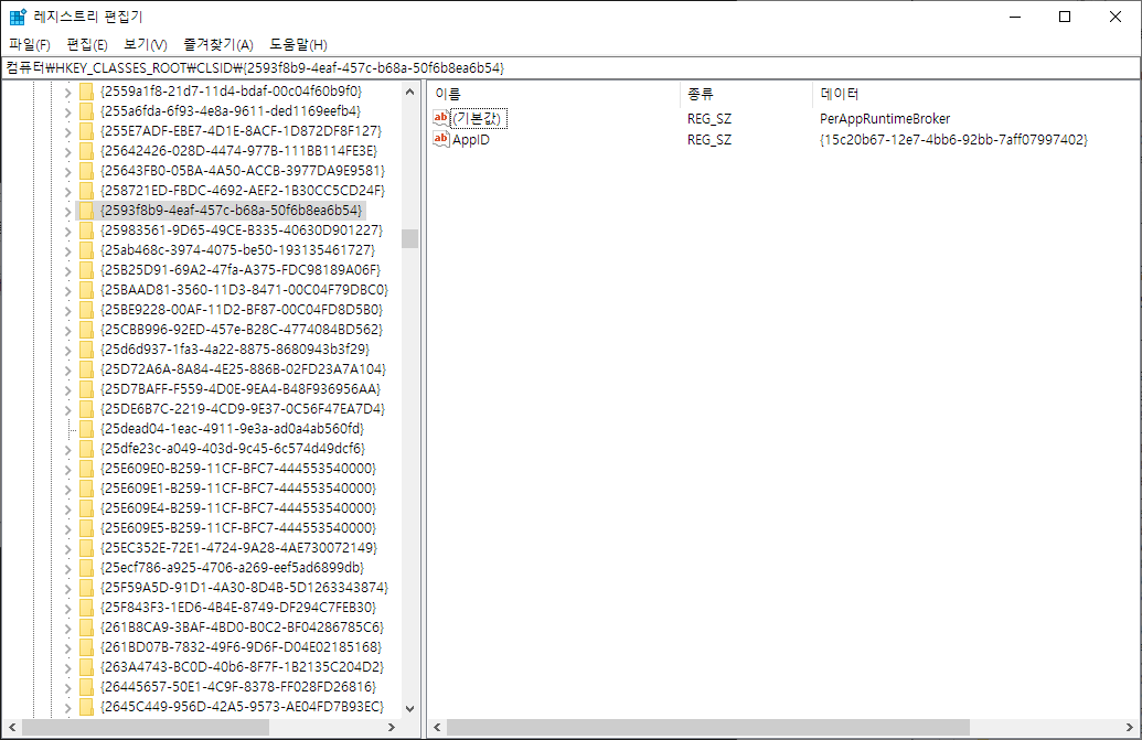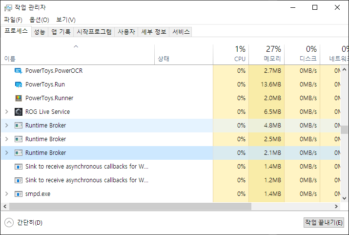 다른 하나는 다음과 같이 이름이 PerAppRuntimeBroker로 나온다.