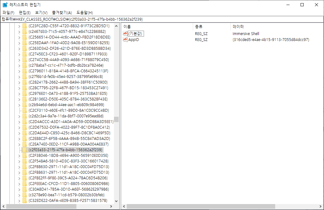 실행(단축키 Win+R) - regedit 엔터 - 다음의 경로에서 오류의 Class ID와 일치하는 것을 찾는다.